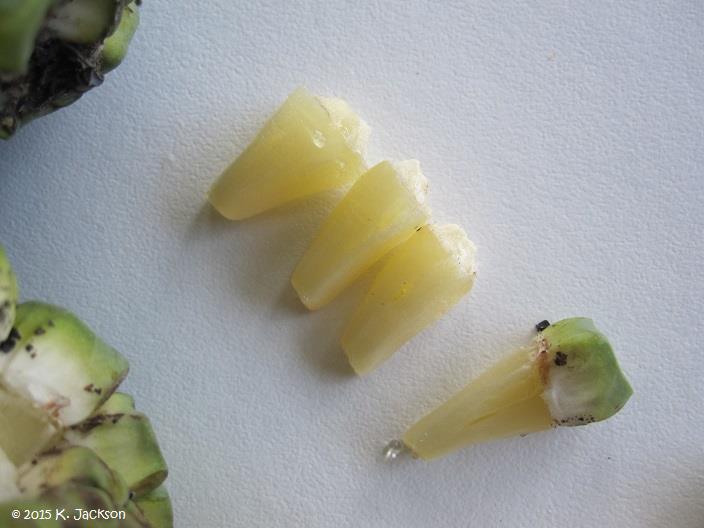 | Bibliography 1 Fruits of Warm Climates. Julia F. Morton, Miami, 1987. 2 Crane, Jonathan H., and Carlos F. Balerdi. "Monstera Growing in the Florida Home Landscape." edis.ifas.ufl.edu. This document is HS1071, one of a series of the Horticultural Sciences Department, Florida Cooperative Extension Service, Institute of Food and Agricultural Sciences, University of Florida. Original publication date Feb. 2005. Revised Nov. 2016. Reviewed Dec. 2019. Accessed 29 Dec. 2016, 12 Apr. 2020. 3 Deane, Green. "Ceriman, Delicious Monster." Eat the Weeds and other things, too. eattheweeds.com. Web. 12 Feb. 2015. 4 Gilman, Edward F. "Monstera deliciosa." edis.ifas.ufl.edu. This document is Fact Sheet FPS-414, one of a series of the Environmental Horticulture Department, Florida Cooperative Extension Service, Institute of Food and Agricultural Sciences, University of Florida. Publication Oct. 1999. Archived. Web. 12 Feb. 2015. 5 "Monstera deliciosa Liebm." The Plant List (2010). Version 1. theplantlist.org. Web. 29 Dec. 2016. 6 "Taxon: Monstera deliciosa Liebm." USDA, Agricultural Research Service, National Plant Germplasm System. 2018. Germplasm Resources Information Network (GRIN-Taxonomy). National Germplasm Resources Laboratory, Beltsville, Maryland. npgsweb.ars-grin.gov/gringlobal/taxonomydetail.aspx?id=24556. Accessed 5 Sept. 2018. Photographs Fig. 1 Maguire, Ian. Monstera deliciosa. Tropical Fruit Photography Picture Archive. trec.ifas.ufl.edu. Web. 13 Feb. 2015. Fig. 2,3 Starr, Forest and Kim. Monstera deliciosa (Swiss-cheese plant). 2008. Lowes Garden Center Kahului, Maui. starrenvironmental.com. (CC BY-SA 3.0). Web. 12 Feb. 2015. Fig. 4,5 Kwan. Monstera deliciosa. 2008. natureloveyou.sg. Web. 12 Feb. 2015. Fig. 6,8 Starr, Forest and Kim. Monstera deliciosa (habit). 2008. Makawao, Maui, Hawai'i. starrenvironmental.com. (CC BY-SA 3.0). Web. 2 Jan. 2017. Fig. 7 Starr, Forest and Kim. Monstera deliciosa (stems). 2008. Makawao, Maui, Hawai'i. starrenvironmental.com. (CC BY-SA 3.0). Web. 2 Jan. 2017. Fig. 8 Starr, Forest and Kim. Monstera deliciosa (Swiss-cheese plant) Fruiting habit. 2011. Kula Botanical, Maui. starrenvironmental.com. (CC BY-SA 3.0). Web. 12 Feb. 2015. Fig. 9 Peixoto, Rosina. Philodendron species can be found in many diverse habitats in the tropical Americas and the West Indies. 2010. commons.wikimedia.org. (CC BY-SA 3.0). Web. 2 Jan. 2017. Fig. 10 Starr, Forest and Kim. Monstera deliciosa (Swiss-cheese plant) Habit and water feature. 2012. Iao Tropical Gardens of Maui, Maui. starrenvironmental.com. (CC BY-SA 3.0). Web. 12 Feb. 2015. Fig. 11,20 Carr, Gerald,D. Monstera deliciosa, Areacea. N.d. University of Hawai'i, Botany Department, Mānoa Campus Plants. botany.hawaii.edu. Web. 13 Feb. 2015. Fig. 12 Hagens, Wouter. Monster fruit, Monsterio Delicio, Monstereo, Swiss Cheese Plant or Mexican Breadfruit. 2001. commons.wikimedia.org. Public domain. Web. 2 Jan. 2017. Fig. 13 Starr, Forest & Kim. Monstera deliciosa (Swiss-cheese plant) Flower. Makawao, Maui, Hawai'i. 2008. starrenvironmental.com. (CC BY-SA 3.0). Web. 2 Jan. 2017. Fig. 14 Avenue. Flower and buds of Monstera deliciosa, in the grounds of Old Government House, Auckland. 2006. commons.wikimedia.org. (CC BY-SA 3.0). Web. 2 Jan. 2017. Fig. 15 St-John, H. Monstera deliciosa, Areacea. N.d. University of Hawai'i, Botany Department, Mānoa Campus Plants. botany.hawaii.edu. Web. 13 Feb. 2015. Fig. 16 Tattersall, Malcolm. Monstera deliciosa, cultivated, Townsville - close-up of fresh flower, with tiny flies and (out of focus at lower right) a native bee (Trigona sp. or similar) attracted to it. The background of the photo is the flower's hood. 2010. flickr.com. (CC BY-NC-SA 2.0). Web. 3 Jan. 2017. Fig. 17 Nash, Andrew. Self peeling bananas, taste like pineapples. Funchal Public Market. 2011. commons.wikimedia.org. (CC BY-SA 2.0). Web. 2 Jan. 2017. Fig. 18 Starr, Forest and Kim. Monstera deliciosa (Swiss-cheese plant). Fruit on display. Maui County Fair Kahului, Maui, Hawai'i. 2012. starrenvironmental.com. (CC BY-SA 3.0). Web. 2 Jan. 2017. Fig. 19,25 B. navez. Monstera deliciosa: ripen fruits with inside details. 2006. commons.wikimedia.org. GNU Free Documentation License, Version 1.2 and (CC BY-SA 3.0). Web. 2 Jan. 2017. Fig. 21 Jackson, Karen. "Monstera deliciosa Series." 2013. growables.org. JPG file. Fig. 22 Richfield, Jon. Note the dead cataphyll at the leaf petiole, plus the dead spathe around one spadix. 2011. commons.wikimedia.org. (CC BY-SA 3.0). Web. 2 Jan. 2017. Fig. 23 Stefano. Monstera deliciosa. 2014. flickr.com. (CC BY-NC-SA 2.0). Web. 3 Jan. 2017. Fig. 24 Pearson, Cris. Monstera deliciosa. We have a plant in our new house. Didn't know if it was edible at first. Yum. 2006. flickr.com. (CC BY-NC-SA 2.0). Web. 3 Jan. 2017. Fig. 26,27,28,29 Jackson, Karen "Monstera deliciosa series." 2018. www.growables.org. JPG file. Fig. 30,31 Kraft, Sönke aka zu Linden, Arnulf. Monstera deliciosa (Windowleaf), stem cutting with fresh sprout. 2009. commons.wikimedia.org. GNU Free Documentation License, Version 1.2, (CC BY-SA 3.0), (CC BY-SA 2.5), (CC BY-SA 1.0). Web. 2 Jan. 2017. Fig. 32,33,34 Capinera, John. Eastern lubber grasshopper. N.d. University of Florida. edis.ifas.ufl.edu. Web. 13 Feb. 2015. Fig. 35 Hyde, Mark, Bart Wursten and Petra Ballings. Monstera deliciosa Liebm. Crocodile Farm, Kariba, Garden, 2009-01-06, (CC BY-NC 3.0), eol.org/data_objects/19253037. Accessed 5 Sept. 2018. Fig. 36 Tattersall, Malcolm. Monstera deliciosa, cultivated, Townsville - whole mature fruit and cut fruit, 2015-05-19 21:17:33 UTC, (CC BY-NC-SA 2.0), eol.org/data_objects/24870856. Accessed 5 Sept. 2018. * UF/IFAS Assessment of Non-native Plants in Florida's Natural Areas ** Information provided is not intended to be used as a guide for treatment of medical conditions. Published 12 Feb. 2015 LR. Last update 12 Apr. 2020 LR |