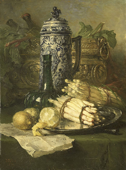 Art Fig. 1 Bringa, Narciso Méndez. "April, Los Primeros Espárragos." Getty Research Institute, Blanco y negro, Almanaque para 1899, Wikimedia Commons, Public Domain, commons.wikimedia.org/wiki/File:1899-01-01,_Blanco_y_Negro,_Abril,_Los_primeros_espárragos,_Méndez_Bringa.jpg. Accessed 19 Jan. 2020. Fig. 2 Holtzbecker, Hans Simon. "Asparagus officinalis." Google Art Project." Gottorfer Codex, bind 2, planche 77, 1649 - 1659, Wikimedia Commons, Public Domain, commons.wikimedia.org/wiki/File:Hans_Simon_Holtzbecker_-_Asparagus_officinalis_-_Google_Art_Project.jpg. Accessed 21 Dec. 2019. Fig. 3 "Mary Washington Asparagus." Biodiversity Heritage Library, 112 superb varieties for market gardeners season of 1926, Wikimedia Commons, Public Domain, 10.5962/bhl.title.68866. Accessed 22 Jan. 2020. Fig. 4 "Asparagus officinalis." biolib.de, Prof. Dr. Otto Wilhelm Thomé Flora von Deutschland, Österreich und der Schweiz, Gera, Germany, 1885, Wikimedia Commons, Public Domain, commons.wikimedia.org/wiki/File:Illustration_Asparagus_officinalis0.jpg. Accessed 21 Dec. 2019. Fig. 5 Manet, Édouard. "Bunch of Asparagus." 1880, Wikimedia Commons, Public Domain, commons.wikimedia.org/wiki/File:Edouard_Manet_Bunch_of_Asparagus.jpg. Accessed 21 Dec. 2019. Fig. 6 Utrecht, Adriaen van. "Still life with fruit piled high in a basket, surrounded by quinces, melons and asparagus on a ledge." 1641, Wikimedia Commons, Public Domain, commons.wikimedia.org. Accessed 21 Dec. 2019. Fig. 7 "Asparagus (Sparagus). Nature: Its nature is moderately warm and moist in the first degree. Optimum: The fresh kind whose tip is turned downward toward the earth. Usefulness: It influences coitus positively and removes occlusions. Dangers: It is bad for the stomach lining. Neutralization of the Dangers: Boiled and then seasoned with salted water." Tacuinum of Paris, 14th century, Wikimedia Commons, Public Domain, commons.wikimedia.org/wiki/File:Tacuin_Asperge38.jpg. Accessed 21 Dec. 2019. Fig. 8 4028mdk09 "Spargel ist in Schwetzingen überall präsent, hier als Deko vor einer Hauseinfahrt (Baden-Württemberg, Deutschland)." 28 May 2010, Wikimedia Commons, (CC BY-SA 3.0), commons.wikimedia.org/wiki/File:Deko-Spargel_in_Schwetzingen.JPG. Accessed 21 Dec. 2019. Fig. 9 "Spargelanlage / Der Spargel" (Asparagus harvest). Collecticle card by A. Zuntz sel." Delcampe, 19/20th century, Wikimedia Commons, Public Domain, commons.wikimedia.org/wiki/File:Zuntz_Bild_Der_Spargel.jpg. Accessed 21 Dec. 2019. Fig. 10 Campi, Vincenzo. "La Fruttivendola. The Fruit Seller." c. 1580, Wikimedia Commons, Public Domain, commons.wikimedia.org/wiki/File:Vcampi.jpg. Accessed 21 Dec. 2019. Fig. 11 Vos, Maria. "Stilleven met een kan van steengoed en asperges. Still-life with Asparagus, Lemon, Covered Beaker, and Wine Cooler." Rijksmuseum, 1878, Wikimedia Commons, Public Domain, commons.wikimedia.org/wiki/File:Maria_Vos_-_Stilleven_met_kan_van_steengoed.jpg. Accessed 21 Dec. 2019. Fig. 12 Sepp, Christiaan. "Asparagus officinalis L. subsp. officinalis." Flora Batava, Jan Kops (Author), Volume 2, 1807, Wikimedia Commons, Public Domain, commons.wikimedia.orgwiki/File:Asparagus_officinalis_—_Flora_Batava_—_Volume_v2.jpg. Accessed 21 Dec. 2019. Published 7 Feb. 2020 KJ | |
